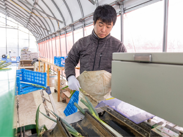 あわら市では農業をやろうと思っていたので、まず、家からそう遠くないところにある「ふくい園芸カレッジ」で2年間、農業の勉強をしました。ここは独立就農を目指す人のための県の研修施設で、僕は家から車で通い、同期の仲間たちと一緒に作物の栽培方法をはじめ、たくさんのことを学びました。作物を育てていると、日々、生育状況が気になり、出かけることもあまりなく、「ふくい園芸カレッジ」は一番思い出深い場所になりました。研修終了後は就農し、ネギ、メロン、スイートコーンを育てています。